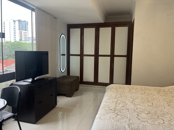 MONOAMBIENTE AMOBLADO EN ALQUILER 📍 Av. Banzer y Av. Beni, entre 4to y 5to anillo. 🟠Consta de: -Dormitorio con Somier de 2 Plazas, Ropero empotrado, Aire Acondicionado. -Bañ